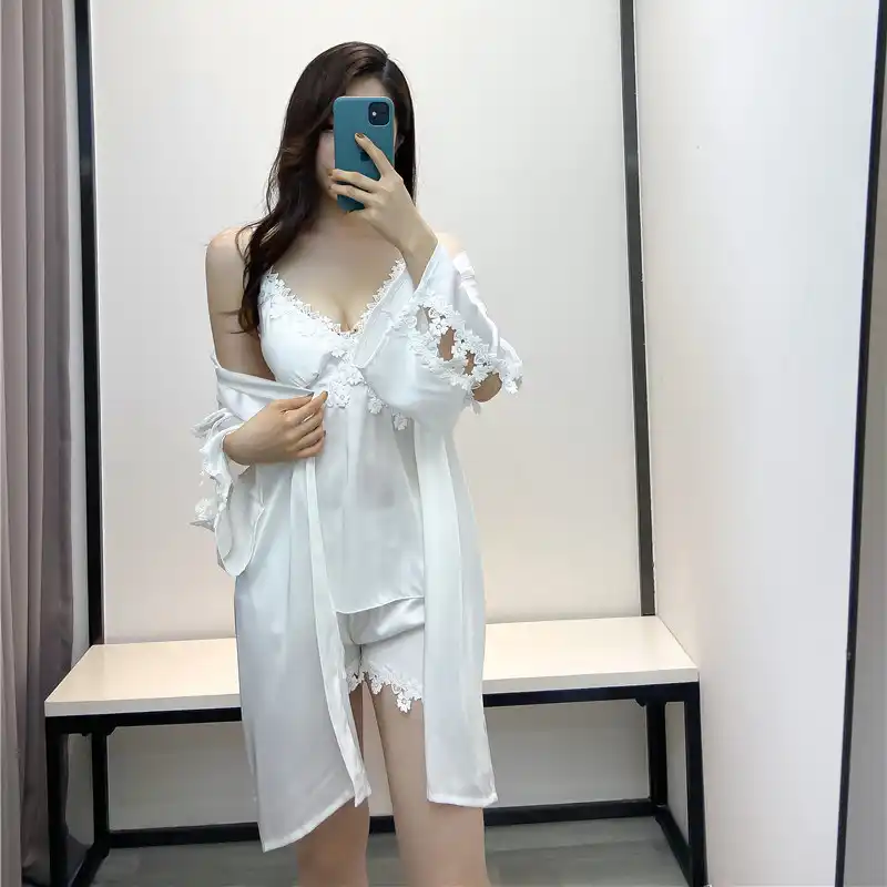 New Women Satin Robe Dress Set Casual Nightdress Sexy Sleepwear Bridemaid Bride Lace 3pcs Kimono Bath Gown Home Clothes Robe Gown Sets Aliexpress