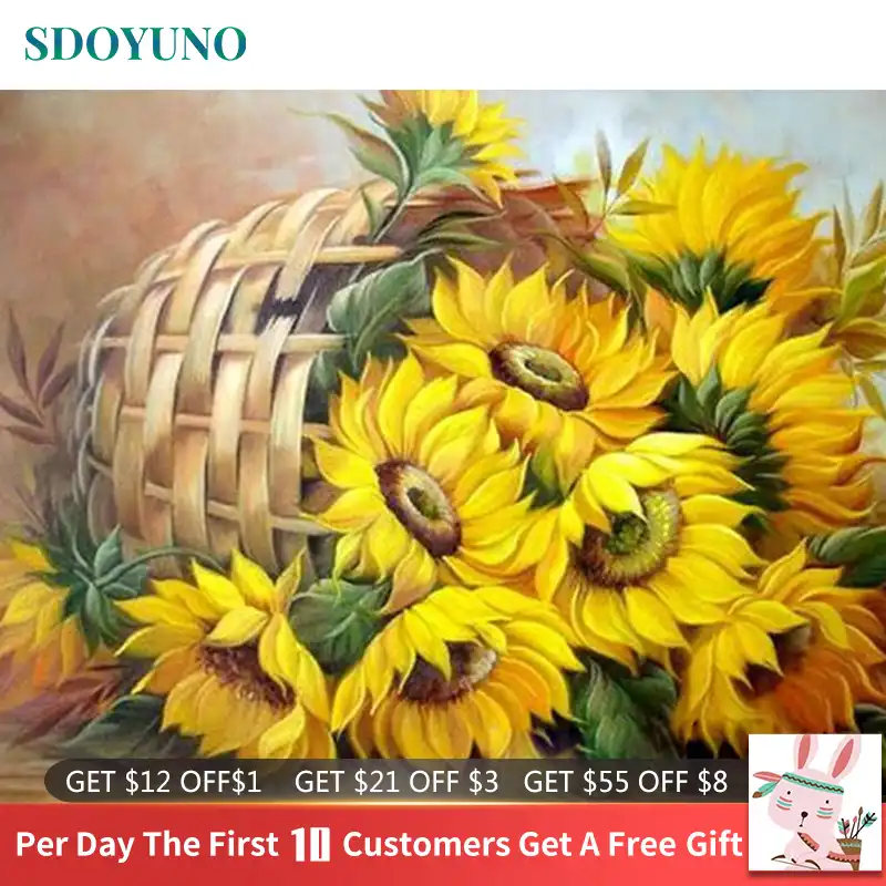 Frameless Picture By Numbers Kit Sunflowers Modern Home Wall Art Oil Painting Diy Handpaint Picture Flowers Painting By Numbers Paint By Number Aliexpress