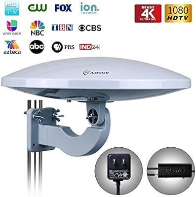 amazon com antop outdoor tv antenna build in 4g lte filter with smartpass amplifier 65 miles omni directional 360 reception with uv coating technology high gain 33ft long coaxial cable 4k uhd ready home audio